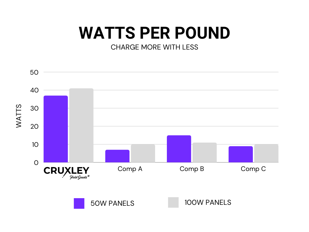 Whether you’re a through hiker or just don’t want to deal with lugging around a heavy panel car camping, we can all benefit from a lighter load. Our thin film panels have no glass or heavy backing that weigh down traditional panels, allowing you to move faster or pack more.